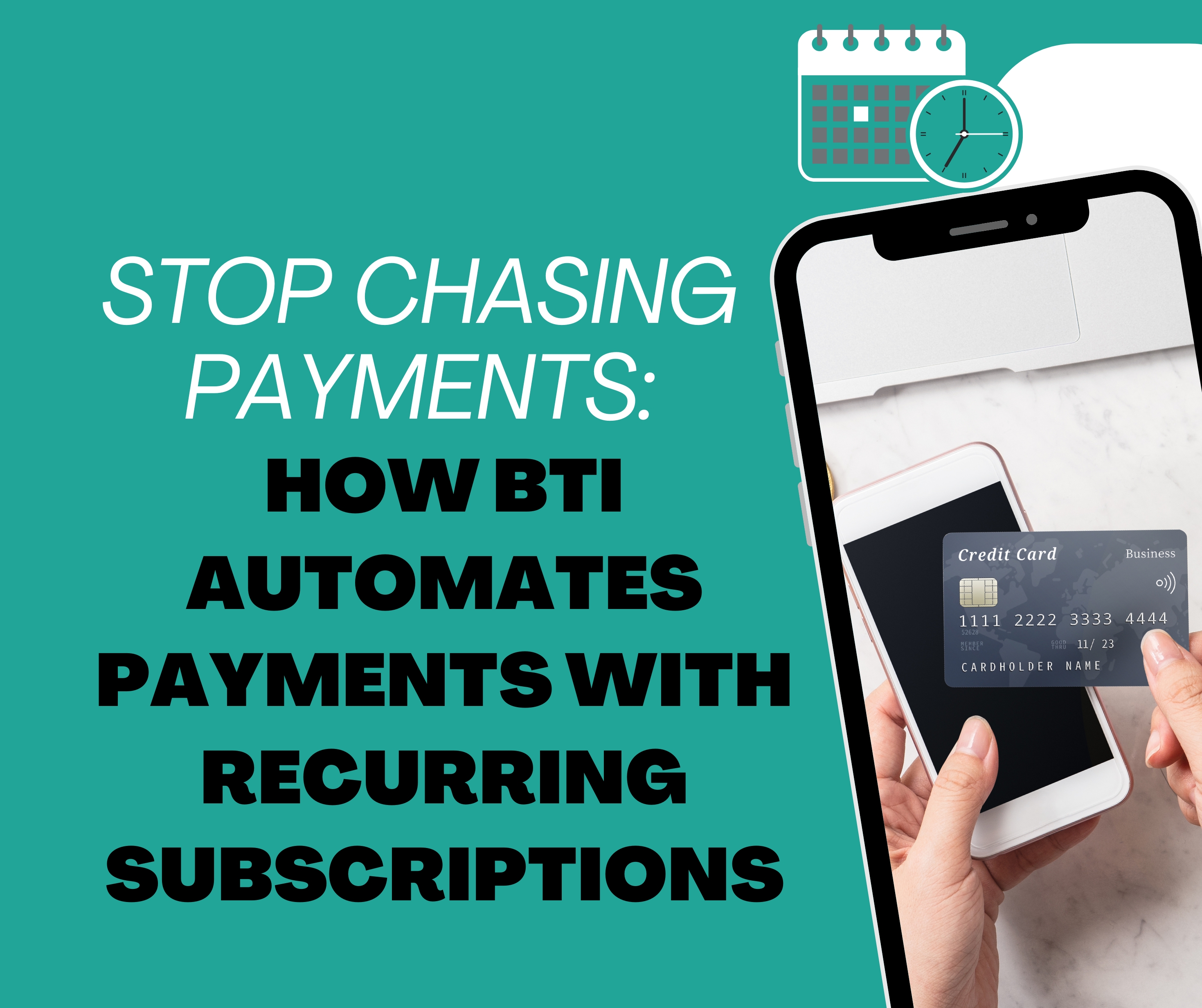 This means your customers sign up once, save their card, and BTI ensures they are billed on schedule without constant manual work from you.